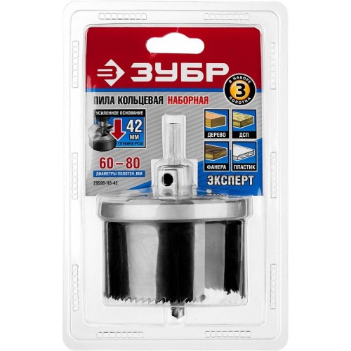 Наборная кольцевая пила Зубр это многолетний опыт создания инструментов для реализации самых сложных задач в строительстве и производстве. Применяется при сверлении дерева, ДСП и прочих древесных материалов