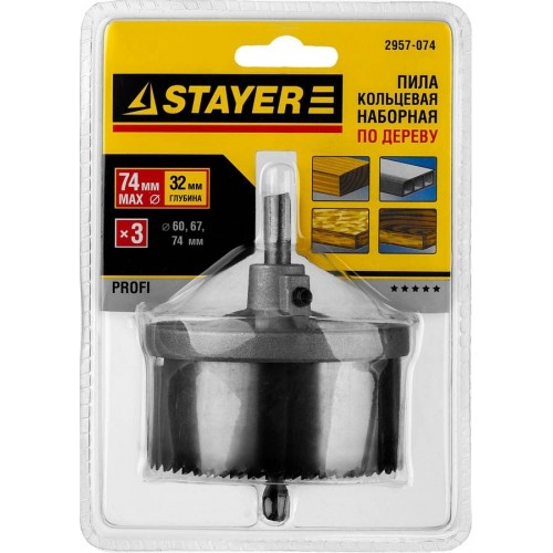 Пила наборная по дереву STAYER 2957-074, используется для сверления отверстий в дереве, фанере, гипсокартоне, ДСП, пластике, при монтаже электророзеток, потолочных светильников, распределительных коробок и другой электрофурнитуры. Благодаря применению высококачественных материалов и современных методов изготовления обеспечивается высокий ресурс работы и максимальная производительность.