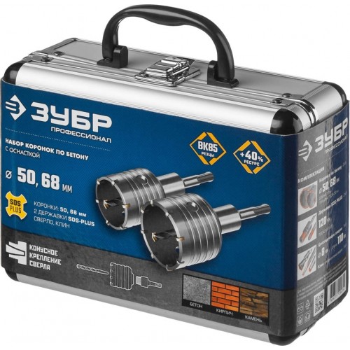ЗУБР 2 шт: d=50-68 мм, набор коронок по бетону с оснасткой 29185-H2-1