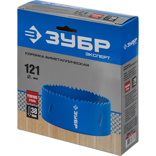 Буровая коронка биметаллическая ЗУБР 29531-121_z01, применяется при сверлении металла, дерева, ДСП, гипсокартона и твёрдых пластмасс. Универсальные биметаллические кольцевые пилы ЗУБР имеют разведённые закалённые зубья повышенной твёрдости с прогрессивным расположением. Благодаря чему гарантируется аккуратное чистовое сверление без трещин и сколов. Компенсационные прорези в корпусе обеспечивают снижение шума при работе, а также предотвращают деформацию пилы вследствие перегрева изделия.