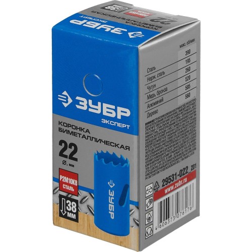 Буровая коронка биметаллическая ЗУБР 29531-022_z01, применяется при сверлении металла, дерева, ДСП, гипсокартона и твёрдых пластмасс. Универсальные биметаллические кольцевые пилы ЗУБР имеют разведённые закалённые зубья повышенной твёрдости с прогрессивным расположением. Благодаря чему гарантируется аккуратное чистовое сверление без трещин и сколов. Компенсационные прорези в корпусе обеспечивают снижение шума при работе, а также предотвращают деформацию пилы вследствие перегрева изделия.