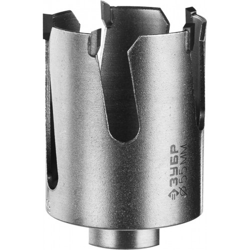 Универсальная коронка ЗУБР 29514-55, предназначена для решения разнообразных задач сверления при проведении строительных и ремонтных работ. Улучшенный твердый сплав повышает рабочий ресурс и стойкость режущих кромок. Фрезерованный корпус из высококачественной стали значительно сокращает возможные биения при работе. Специальный припой с содержанием серебра обеспечивает эффективное сопротивление ударным нагрузкам. Коронка подходит для сверления отверстий в легком бетоне, тонколистовом металле, кирпиче, керамической плитке, пластике, твердой и мягкой древесине.