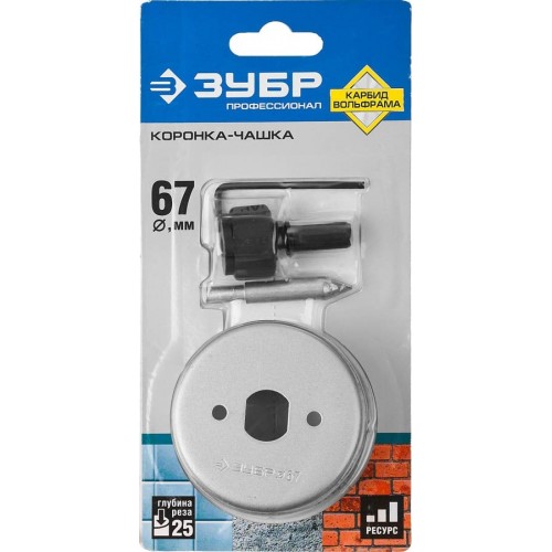 ЗУБР d 67 мм, L - 25 мм, карбид-вольфрамовая крошка, в сборе, коронка-чашка 33360-067_z01 Профессионал