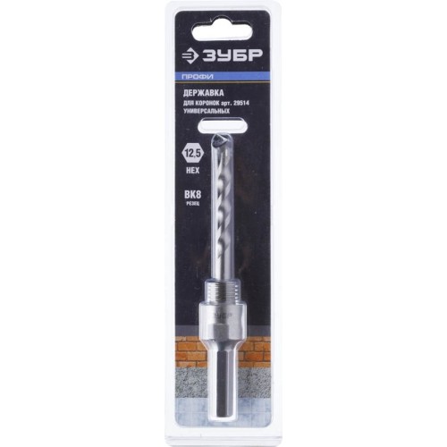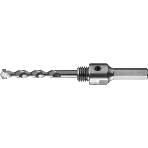 Державка для коронки универсальной ЗУБР 29515, применяется совместно с универсальными коронками диаметром 22-152 мм для надежного закрепления коронок и передаче максимального режущего усилия. Шестигранный хвостовик обеспечивает надежное закрепление в патроне без проворачивания.