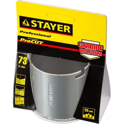 Кольцевая коронка с нанесением карбида вольфрама STAYER серии PROFESSIONAL - надежный и проверенный инструмент высокого качества. Применяется для получения ровных отверстий в облицовочных материалах, а также в ячеистом бетоне, кирпиче и гипсокартоне.