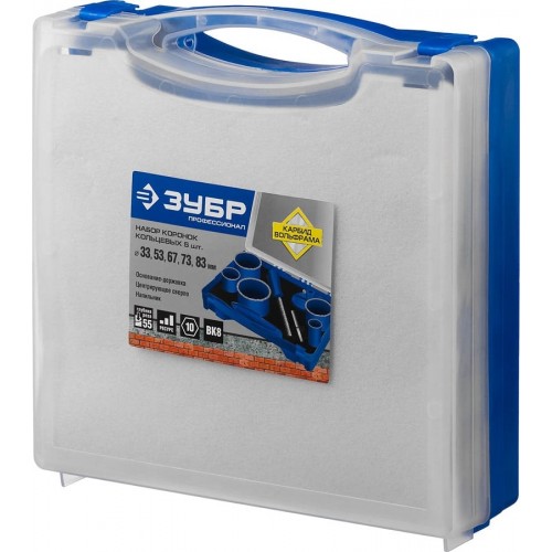 ЗУБР 8 шт.: d 33, 53, 67, 73, 83 мм, карбид-вольфрамовое нанесение, набор кольцевых коронок 33350-H8