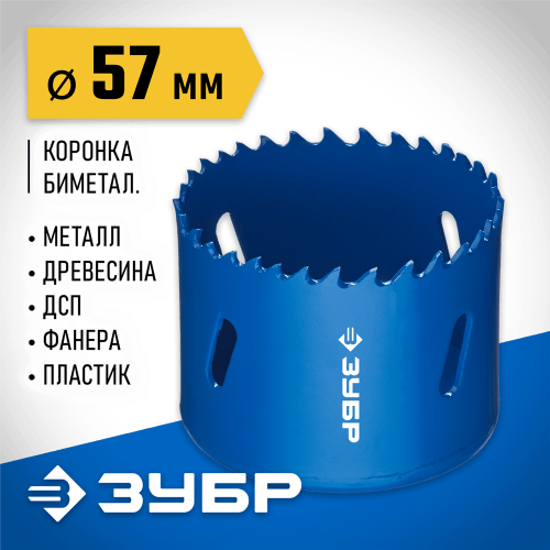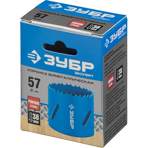 ЗУБР d 57 мм, глубина сверления до 38 мм, коронка биметаллическая 29531-057_z01