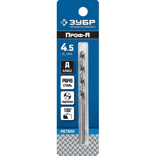 Сверло ЗУБР 29625-4.5, предназначено для обработки легированных и углеродистых сталей с пределом прочности до 900 Н/мм², цветных металлов, серого чугуна и пластмассы. Качественное и точное сверло с большим ресурсом. Сверло изготовлено методом шлифования профиля по ГОСТ 10902-77 и соответствует классу точности сверления "А1". Крестообразная подточка позволяет начать сверлить без предварительного кернения. Угол заточки при вершине равный 135° повышает производительность работ.