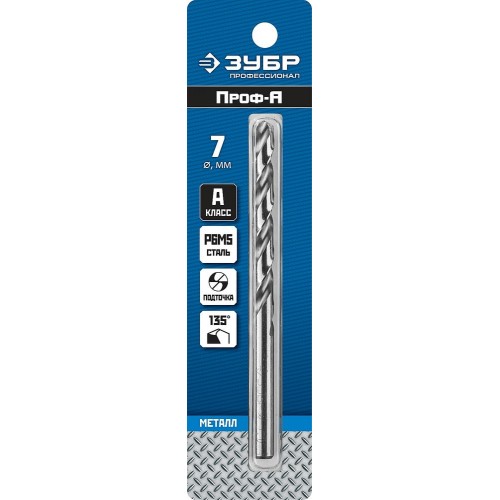 Сверло ЗУБР 29625-7, предназначено для обработки легированных и углеродистых сталей с пределом прочности до 900 Н/мм², цветных металлов, серого чугуна и пластмассы. Качественное и точное сверло с большим ресурсом. Сверло изготовлено методом шлифования профиля по ГОСТ 10902-77 и соответствует классу точности сверления "А1". Крестообразная подточка позволяет начать сверлить без предварительного кернения. Угол заточки при вершине равный 135° повышает производительность работ.