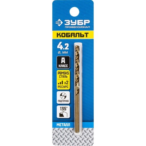ЗУБР Ø 4.2 x 75 мм, сталь Р6М5К5, класс А, сверло по металлу КОБАЛЬТ 29626-4.2 Профессионал