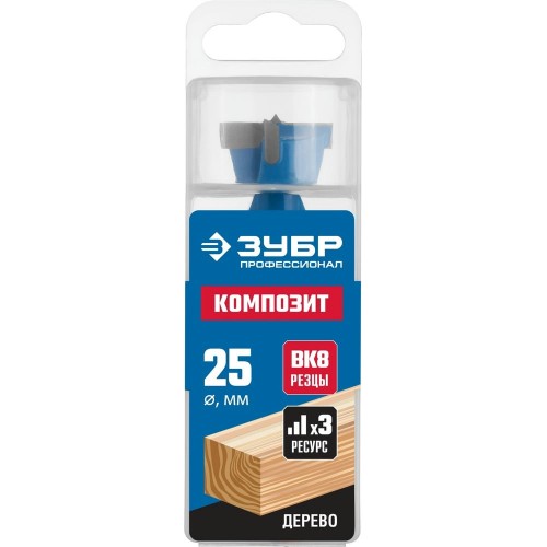 Сверло Форстнера по дереву ЗУБР 29945-25_z01, применяется при установке мебельной фурнитуры, а также при сверлении глухих отверстий с точной геометрией и плоским дном.