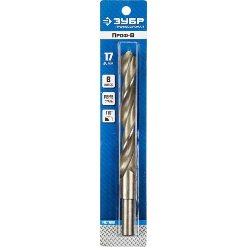 Сверло ЗУБР 29621-17, предназначено для обработки легированных и углеродистых сталей с пределом прочности до 900 Н/мм², цветных металлов, серого чугуна и пластмассы. Качественное сверло с высоким ресурсом. Изготовлено методом винтового проката по ГОСТ 10902-77 и соответствует классу точности "В". Угол заточки 118 градусов позволяет обрабатывать легированные и углеродистые стали.