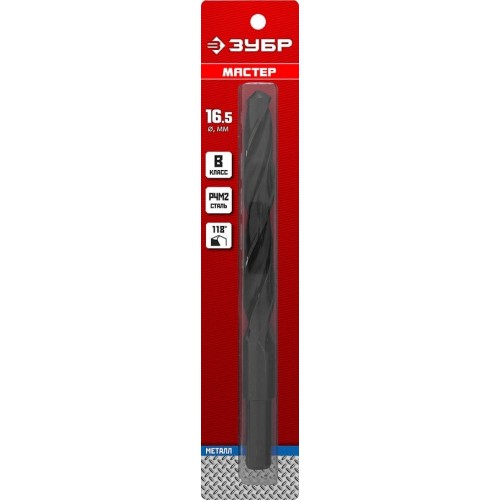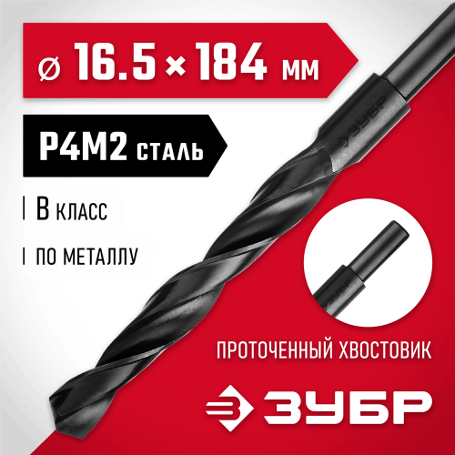 ЗУБР Ø 16.5 x 184 мм, сталь Р4М2, класс В, сверло по металлу 29605-16.5 Мастер