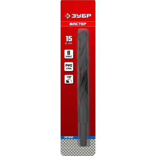 Сверло ЗУБР 29605-15, предназначено для обработки легированных и углеродистых сталей, цветных металлов, серого чугуна и пластмассы. Универсальное сверло для большинства задач. Изготовлено методом винтового проката по ГОСТ 10902-77 и соответствует классу точности "В". Угол заточки 118 градусов позволяет обрабатывать легированные и углеродистые стали.
