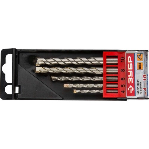 Набор сверел ЗУБР 2922-H5, предназначены для сверления отверстий в бетоне, граните, природном и искусственном камне, кирпиче в режиме сверления с ударом. Твердосплавная пластина позволяет работать сверлами в ударном режиме сверления. Усиленная пластина из твердого сплава ВК8 с углом заточки в 130°, закреплённая жаростойким припоем, существенно увеличивает скорость сверления, а также повышает износостойкость сверла в процессе эксплуатации. Усиленный стальной стержень понижает динамические нагрузки при ударе. Шлифованная поверхность сверла в сочетании с фрезерованной П-образной спиралью ускоряет отвод продуктов сверления, снижая нагрев инструмента. Износостойкое покрытие защищает от коррозии.