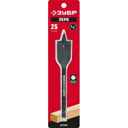Сверло по дереву перовое ЗУБР 29505-25_z01, предназначено для работы с древесиной, а также легкими строительными материалами, такими как гипсокартон.