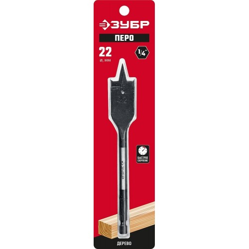 Сверло по дереву перовое ЗУБР 29505-22_z01, предназначено для работы с древесиной, а также легкими строительными материалами, такими как гипсокартон.