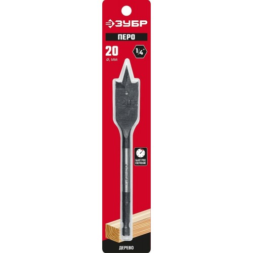 Сверло по дереву перовое ЗУБР 29505-20_z01, предназначено для работы с древесиной, а также легкими строительными материалами, такими как гипсокартон.