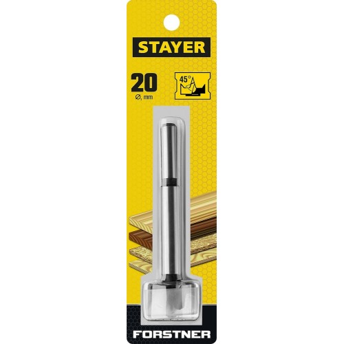 Сверло Форстнера по дереву STAYER 29985-20_z01, применяется при установке мебельной фурнитуры, а также при сверлении глухих отверстий с точной геометрией и плоским дном.