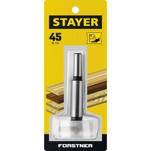 Сверло Форстнера по дереву STAYER 29985-45_z01, применяется при установке мебельной фурнитуры, а также при сверлении глухих отверстий с точной геометрией и плоским дном.