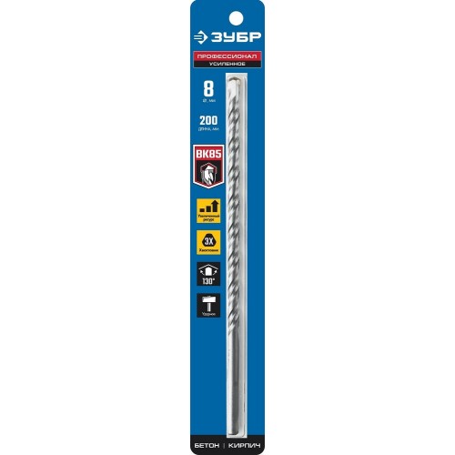 ЗУБР 8 x 200 мм, 3-х гранный хвостовик, сверло по бетону усиленное 2916-200-08_z01 ПРОФЕССИОНАЛ