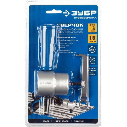 Насадка-ножницы "Сверчок" ЗУБР 23293, предназначена для профессионального точного реза гофрированного и листового металла.