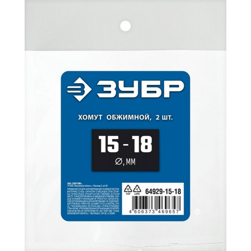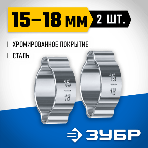 ЗУБР 2 шт., Ø 15-18 мм, обжимной хомут для пневмоинструмента 64929-15-18 Профессионал