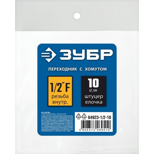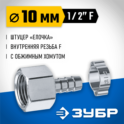 ЗУБР 10 мм, штуцер 1/2"F, с хомутом, переходник для пневмоинструмента 64923-1/2-10 Профессионал