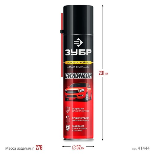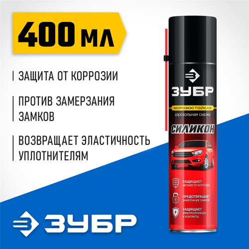 Силиконовая смазка ЗУБР 41444, предназначена для смазывания различных подвижных деталей и поверхностей. Морозостойкая. Объем 400 мл.