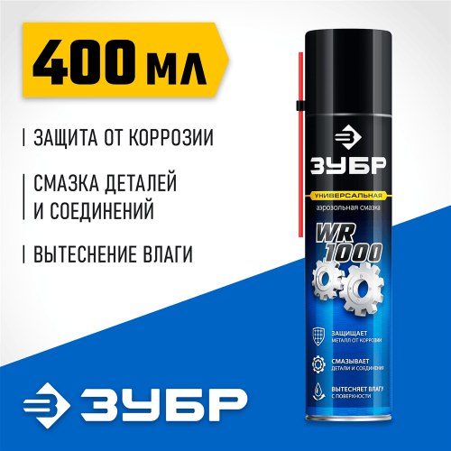 ЗУБР WR-1000 400 мл, средство для тысячи применений, многофункциональная аэрозольная смазка, Профессионал (41442)