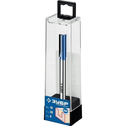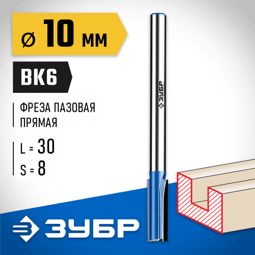 ЗУБР 10 x 30 мм, хвостовик 8 мм, фреза пазовая прямая с нижними подрезателями 28755-10-30 Профессионал