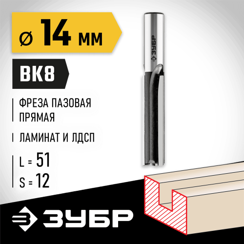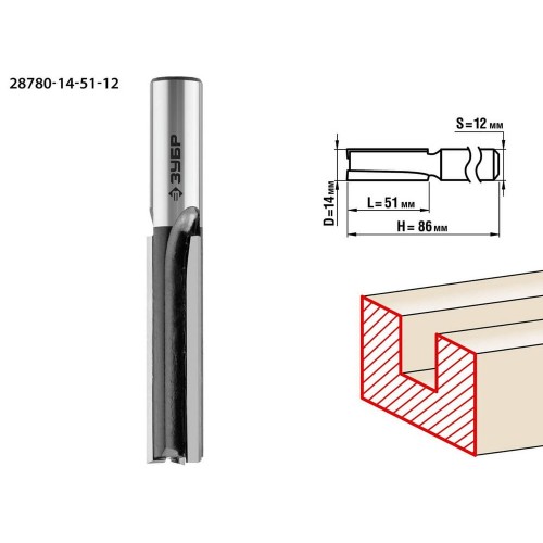 Фреза пазовая прямая ЗУБР 28780-14-51-12, предназначена для изготовления пазов и канавок требуемой конфигурации при работе с различными видами древесины. Улучшенный твердый сплав для повышенного ресурса. Три лезвия обеспечивают максимальную чистоту поверхности. Заточка производится только на самых современных станках с ЧПУ.