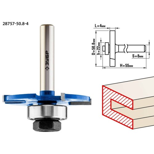 Фреза отлично подходит для выборки пазов на кромках и торцах деталей при работе с различными видами древесины.