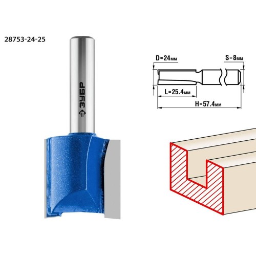 ЗУБР 24 x 25.4 мм, хвостовик 8 мм, фреза пазовая прямая 28753-24-25 Профессионал