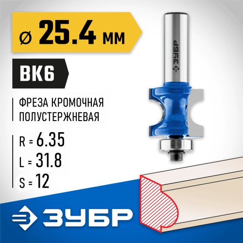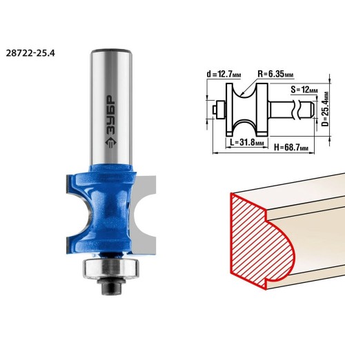 Фреза полустержневая с подшипником ЗУБР 28722-25.4, предназначена для обработки кромок, торцев, получения декоративного профиля при работе с различными видами древесины. Высококачественный твердый сплав для повышенного ресурса и чистоты обработки. Заточка производится только на самых современных станках с ЧПУ. Упорный подшипник позволяет обрабатывать криволинейные кромки без дополнительных приспособлений.