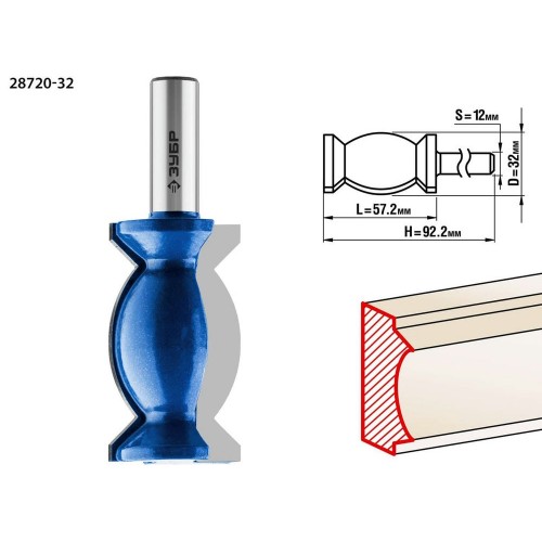 ЗУБР 32 x 57.2 мм, хвостовик 12 мм, фреза кромочная фигурная №9 28720-32 Профессионал