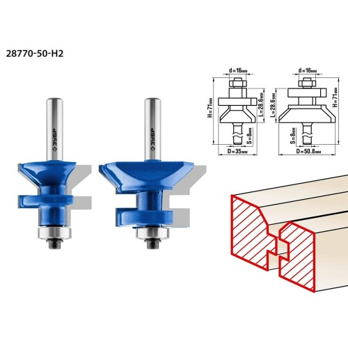 Набор фрез для вагонки ЗУБР 28770-50-H2, предназначен для изготовления профиля и обратного профиля вагонки при работе с различными видами древесины. Высококачественный твердый сплав для повышенного ресурса и чистоты обработки. Заточка производится только на самых современных станках с ЧПУ. Упорный подшипник позволяет обрабатывать криволинейные кромки без дополнительных приспособлений.