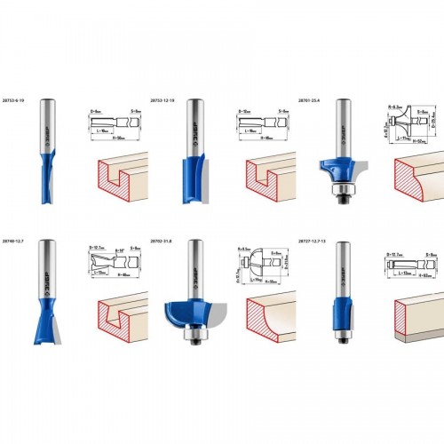Набор фрез отлично подходит для профилирования кромок, изготовления декоративных пазов и рисунков, фрезерования канавок при работе с различными видами древесины.
