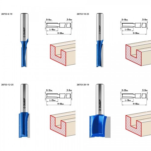 Набор фрез отлично подходит для профилирования кромок, изготовления декоративных пазов и рисунков, фрезерования канавок при работе с различными видами древесины.