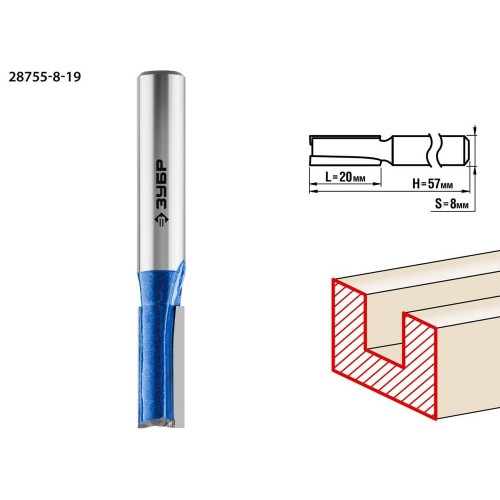 Фреза пазовая прямая с нижними подрезателями ЗУБР 28755-8-19, предназначена для изготовления пазов и канавок требуемой конфигурации при работе с различными видами древесины. Наличие торцевых подрезателей обеспечивает дополнительную чистоту плоскости и легкость врезания. Высококачественный твердый сплав для повышенного ресурса и чистоты обработки. Заточка производится только на самых современных станках с ЧПУ.