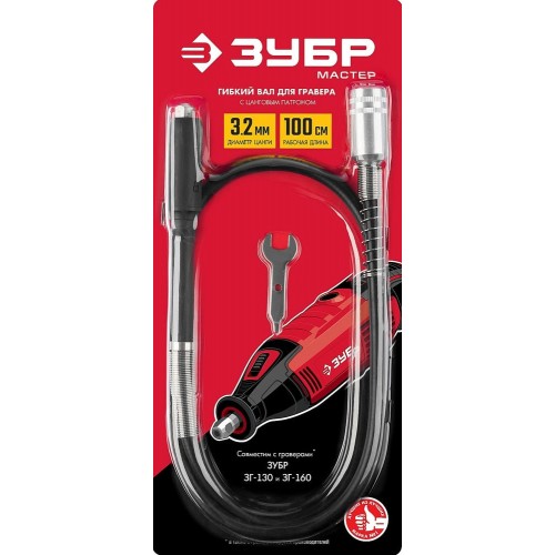 Гибкий вал с цанговым патроном ЗУБР 35944, предназначен для шлифовальных, гравировальных работ с использованием электрического гравера (со всеми моделями ЗУБР и большинством моделей, представленных на рынке).