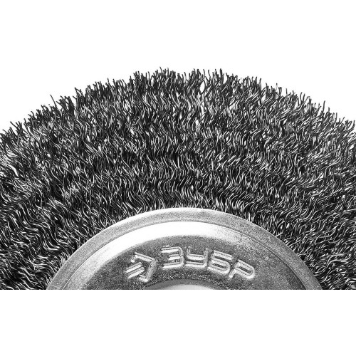 Щетка дисковая для точильно-шлифовального станка ЗУБР 35185-150_z02, для удаления застарелых лакокрасочных покрытий, въевшейся грязи, ржавчины, окалины с поверхностей стальных изделий. Зачистная способность рабочих пучков повышена благодаря специальной технологии тримминга. Износостойкое покрытие защищает от коррозии. Щадящая обработка поверхности без повреждений благодаря витой проволоке. Каждая щетка-крацовка ЗУБР проходит обязательный контроль качества. Все изготавливаемые щетки соответствуют действующим стандартам качества и обеспечивают безопасную работу в четко регламентированном диапазоне оборотов.