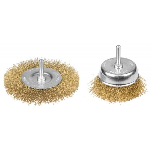 Набор щеток-крацовок для дрели STAYER 35150-H2_z01, для удаления краски, ржавчины, заусенцев, нагара, окалины с поверхностей изделий из стали и цветных металлов. Все изготавливаемые щетки STAYER серии PROFESSIONAL соответствуют действующим стандартам качества и обеспечивают безопасную работу в указанном диапазоне оборотов.