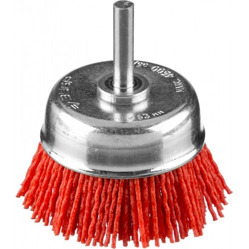 Щетка чашечная для дрели ЗУБР 35165-063_z02, предназначена для применения с дрелью для удаления заусенцев, въевшейся грязи и шлифовки поверхностей изделий из пластика, древесины, стали и цветных металлов, а также полирования перед шпатлеванием (в том числе при ремонте кузова автомобиля). Абразивная нейлоновая проволока оптимально подходит для бережного матирования и текстурирования дерева без нарушения геометрии годичных колец. Зачистная способность рабочих пучков повышена благодаря специальной технологии тримминга. Каждая щетка-крацовка ЗУБР проходит обязательный контроль качества. Все изготавливаемые щетки соответствуют действующим стандартам качества и обеспечивают безопасную работу в четко регламентированном диапазоне оборотов.