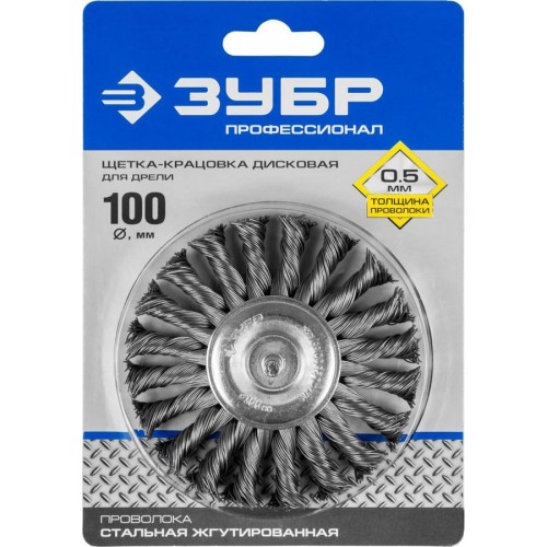 Щетка дисковая для дрели ЗУБР 3522-100_z02, предназначена для применения с дрелью для удаления ржавчины, окалины с поверхностей металлических изделий. Повышенный ресурс щетки благодаря еще более высокой жесткости сплетенного пучка и увеличенной толщине проволоки. Зачистная способность рабочих пучков повышена благодаря специальной технологии тримминга. Износостойкое покрытие защищает от коррозии. Каждая щетка-крацовка ЗУБР проходит обязательный контроль качества. Все изготавливаемые щетки соответствуют действующим стандартам качества и обеспечивают безопасную работу в четко регламентированном диапазоне оборотов.