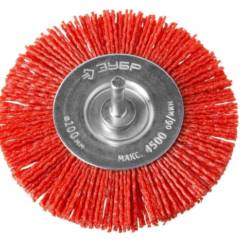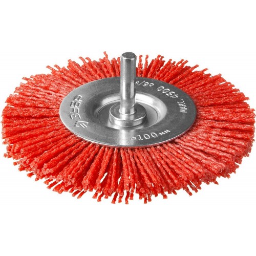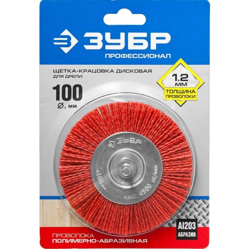 Щетка дисковая для дрели ЗУБР 35161-100_z02, предназначена для применения с дрелью для удаления заусенцев, въевшейся грязи и шлифовки поверхностей изделий из пластика, древесины, стали и цветных металлов, а также полирования перед шпатлеванием (в том числе при ремонте кузова автомобиля). Абразивная нейлоновая проволока оптимально подходит для бережного матирования и текстурирования дерева без нарушения геометрии годичных колец. Зачистная способность рабочих пучков повышена благодаря специальной технологии тримминга. Каждая щетка-крацовка ЗУБР проходит обязательный контроль качества. Все изготавливаемые щетки соответствуют действующим стандартам качества и обеспечивают безопасную работу в четко регламентированном диапазоне оборотов.