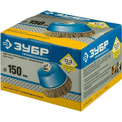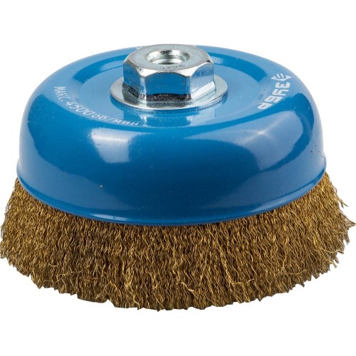 Усиленная щетка чашечная для УШМ ЗУБР 3526-150_z02, предназначена для зачистки поверхностей от лакокрасочных покрытий, ржавчины, окалины, различных стойких загрязнений, а также для зачистки сварных швов. Каждая щетка-крацовка ЗУБР проходит обязательный контроль качества. Все изготавливаемые щетки соответствуют действующим стандартам качества и обеспечивают безопасную работу в четко регламентированном диапазоне оборотов. Витая стальная латунированная проволока. Латунированное покрытие защищает рабочую часть щетки от коррозии.