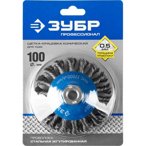 ЗУБР Ø 100 мм, проволока 0.5 мм, щетка коническая для УШМ 35269-100_z02 Профессионал