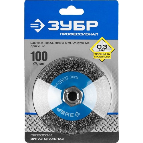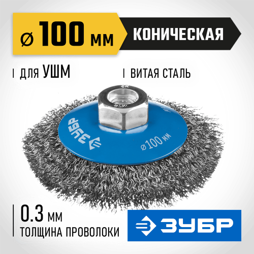 ЗУБР Ø 100 мм, проволока 0.3 мм, щетка коническая для УШМ 35265-100_z02 Профессионал