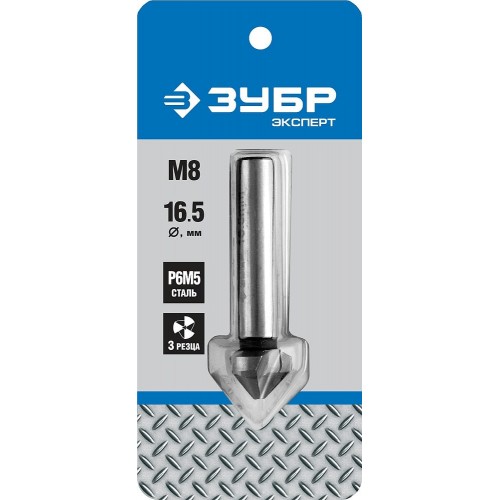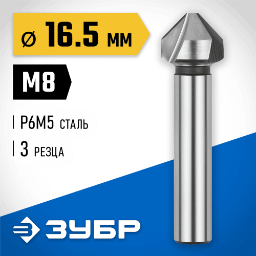 ЗУБР Ø 16,5 x 60 мм, для раззенковки М8, зенкер конусный 29730-8